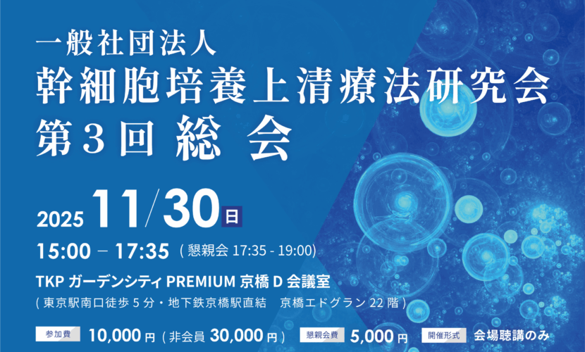 一般社団法人 幹細胞培養上清療法研究会 第3回 総会・講演会